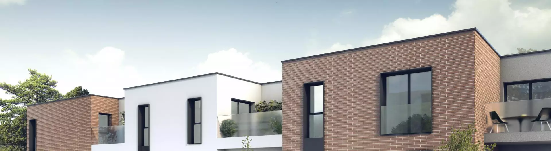 Chaque appartement neuf est doté d'une généreuse loggia et/ou d'une grande terrasse (selon les lots), d’élégants ensembles menuisés et de garde-corps en panneaux de verre dépoli assurant autant de légèreté que d’intimité. Les façades se parent de gris foncé et de blanc, joli contraste souligné par le charme authentiquement toulousain de briques de parement. Les notes de gris anthracite des menuiseries associées à la toiture terrasse révèlent toute la modernité d’un programme immobilier plaçant le bien-être de ses habitants au cœur des priorités.